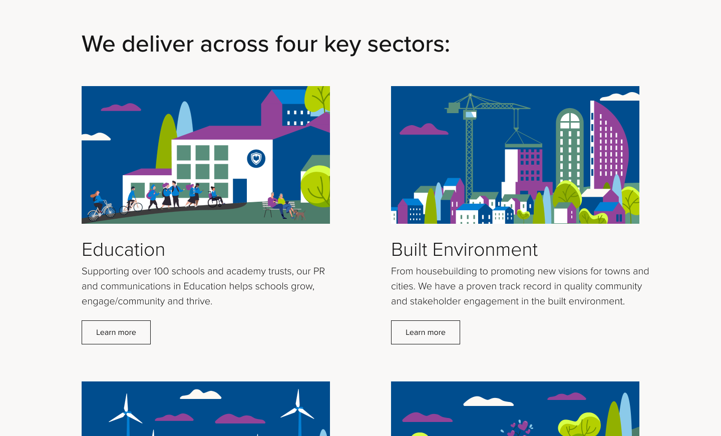 The design centres on a sector led architecture, orienting users by industry rather than service type, reflecting how clients actually think. A considered design system carries the brand consistently across a content rich site, while the case study section was designed to surface impact prominently, turning client work into a genuine conversion tool. Accessible contrast and clear hierarchy ensure inclusivity, important for a client base where accessibility compliance carries real weight.